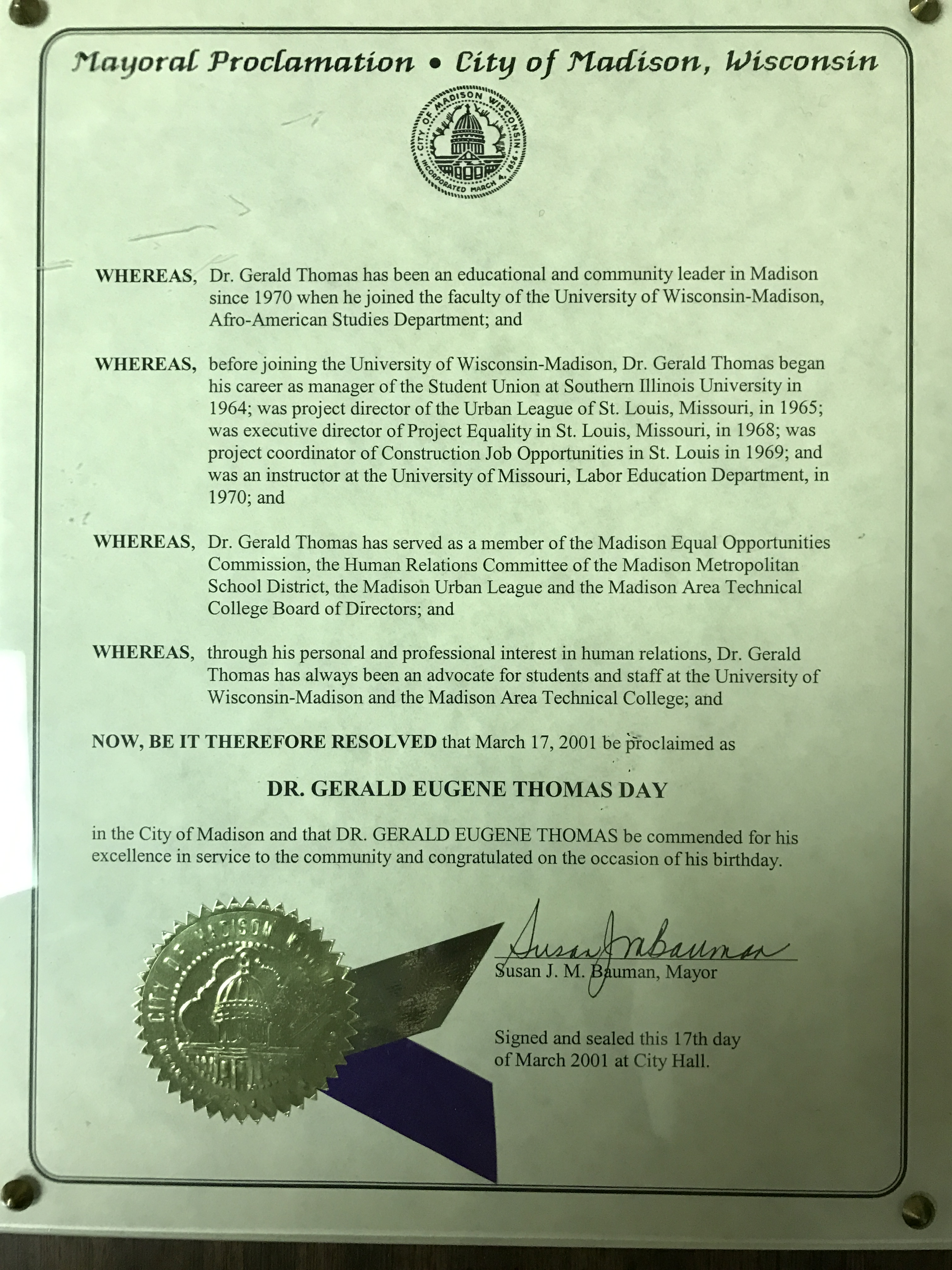 CITATIONS AND PROCLAMATIONS RECEIVED BY DR. THOMAS: