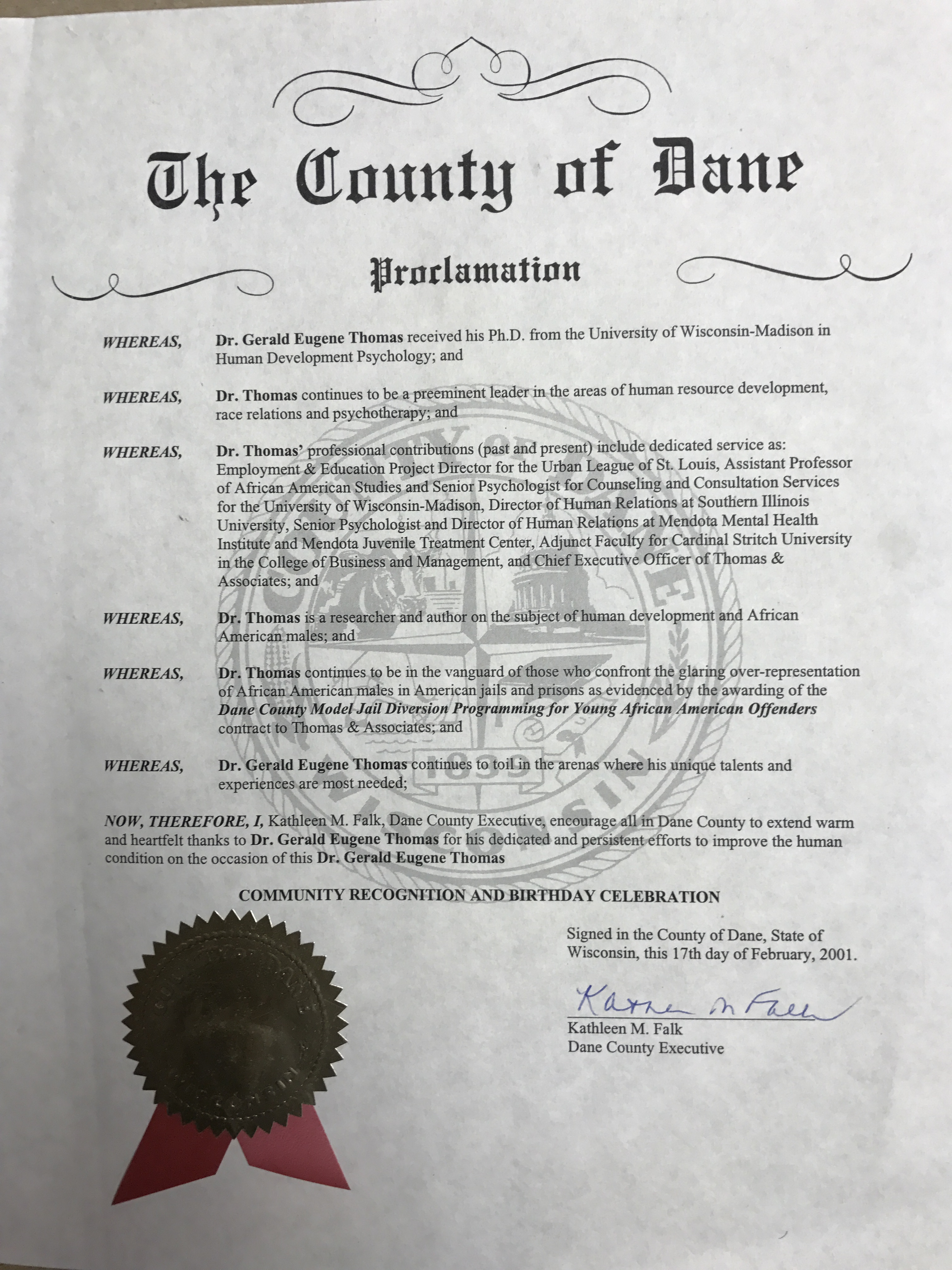 Gerald is a graduate of the University of Wisconsin-Madison. He is a licensed psychologist with an additional certification in substance abuse treatment. Thomas has consulted nationally in education, mental health and race relations.